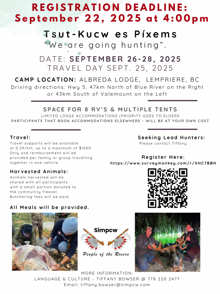Eligible Voters of the Simpcw First Nation are hereby notified that there is to be a referendum vote on whether to approve the Yecwemintem re kwseltkten-kt (“Looking After Our Relations/People”) […]