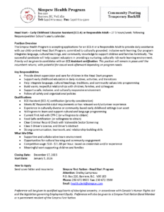 Head Start ECE-A or Responsible Adult Job Posting – December 2025