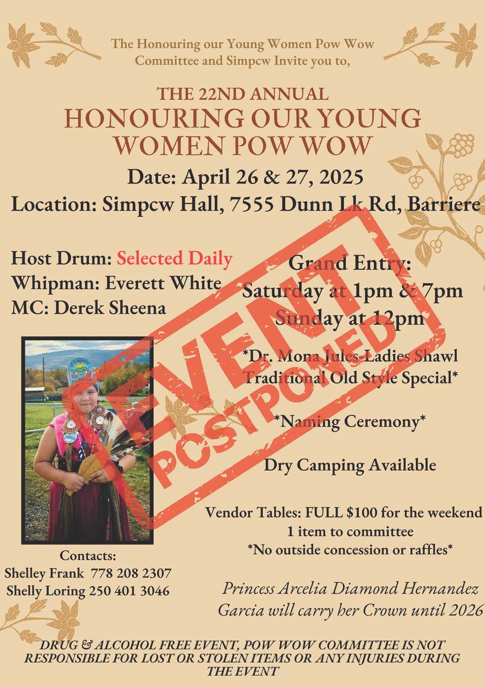 Event Postponed! – 22nd Annual Honouring Our Young Women Pow Wow