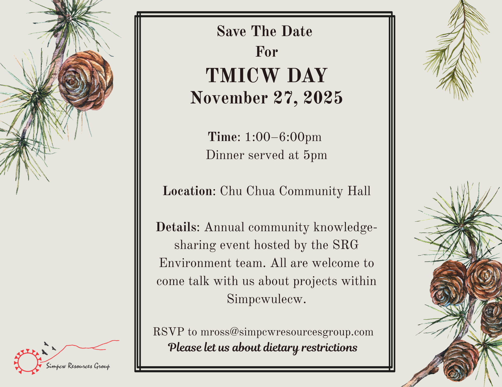Kindly RSVP to mross@simpcwresourcesgroup.com by November 19, 2025, and include any dietary restrictions in your response.