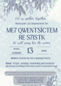 Me7 Qwentsíctem re S7istk – We will pray for the winter
