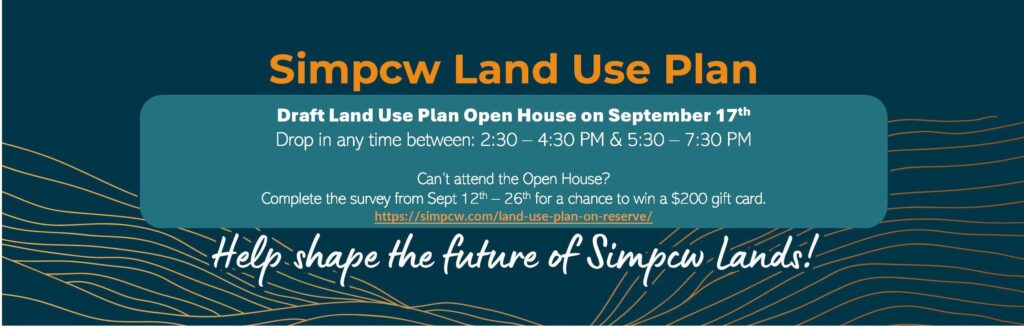Chief and Council have given direction to develop a new/updated, community-led LUP that better reflects community values and priorities and ensures Reserve lands are managed and planned for in a sustainable way, balancing social, cultural, economic, and environmental interests. The two year planning process started in March 2022 and will be finalized at the end of 2024.